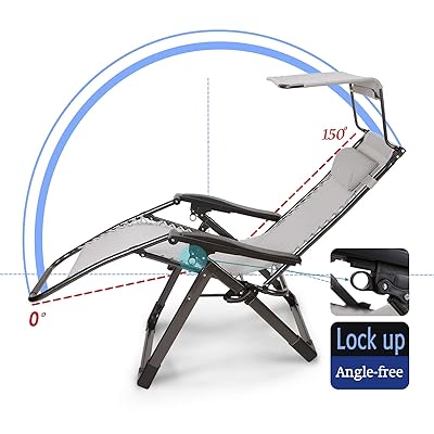 Bonnlo zero gravity chair with canopy patio sunshade lounge chair, adjustable folding shade reclining chairs with cup holder and headrest for beach garden (grey) 4.4 out of 5 stars 446 $79.95 $ 79. 99 list list price $139.99 $ 139. Free shipping (158) all items on sale (251) free shipping (158) all items on sale. The lounge chair includes a the locking mechanism to set the chair in the best position for ultimate relaxation. Zero gravity chair w/canopy patio sunshade lounge lawn chair /w cup holder usa introductions:
